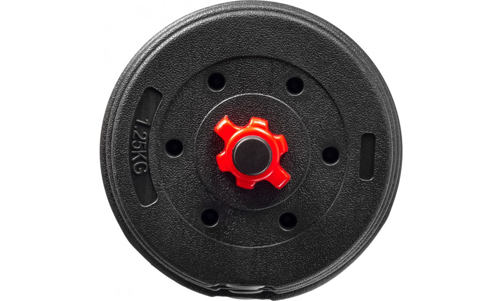 диск 1,25кг - 4шт, диск 1,5кг - 4шт, диск 2кг - 4шт, фиксатор - 4шт, гриф - 2шт