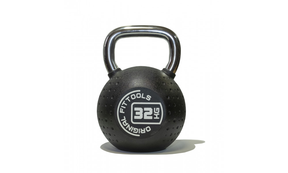 Премиальная гиря 32 кг с хромированной ручкой и высококачественным полиуретановым покрытием.