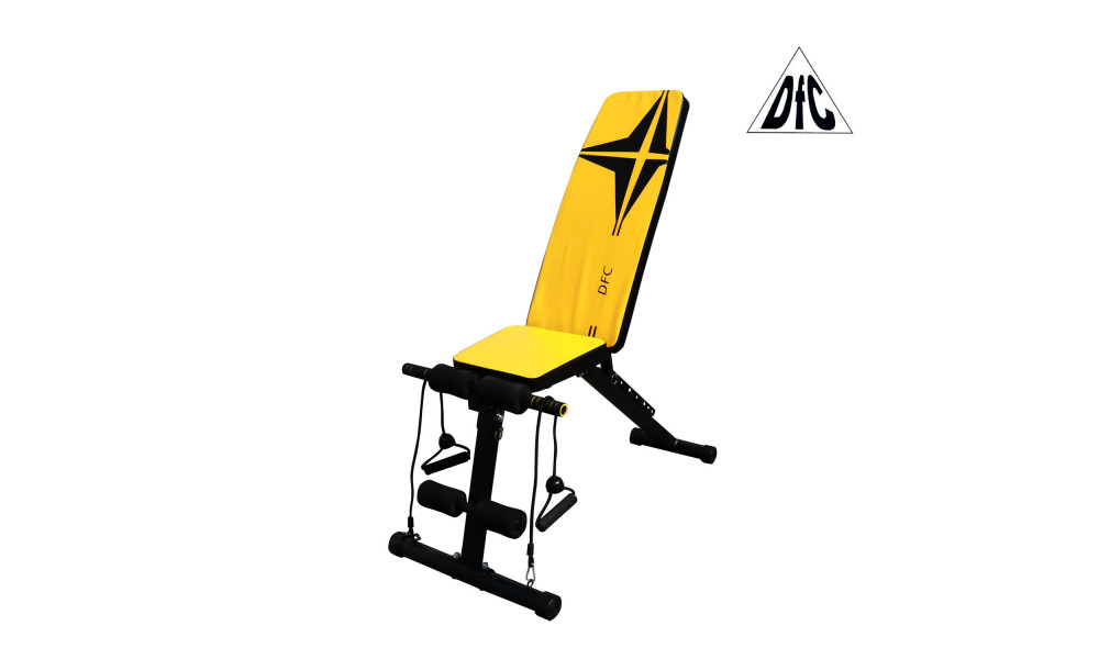 Скамья снабжена мягкими валиками, которые позволяют избежать травм во время выполнения упражнений. Скамья имеет складную конструкцию с фиксацией собранного положения с помощью 2 штырей с кольцом.